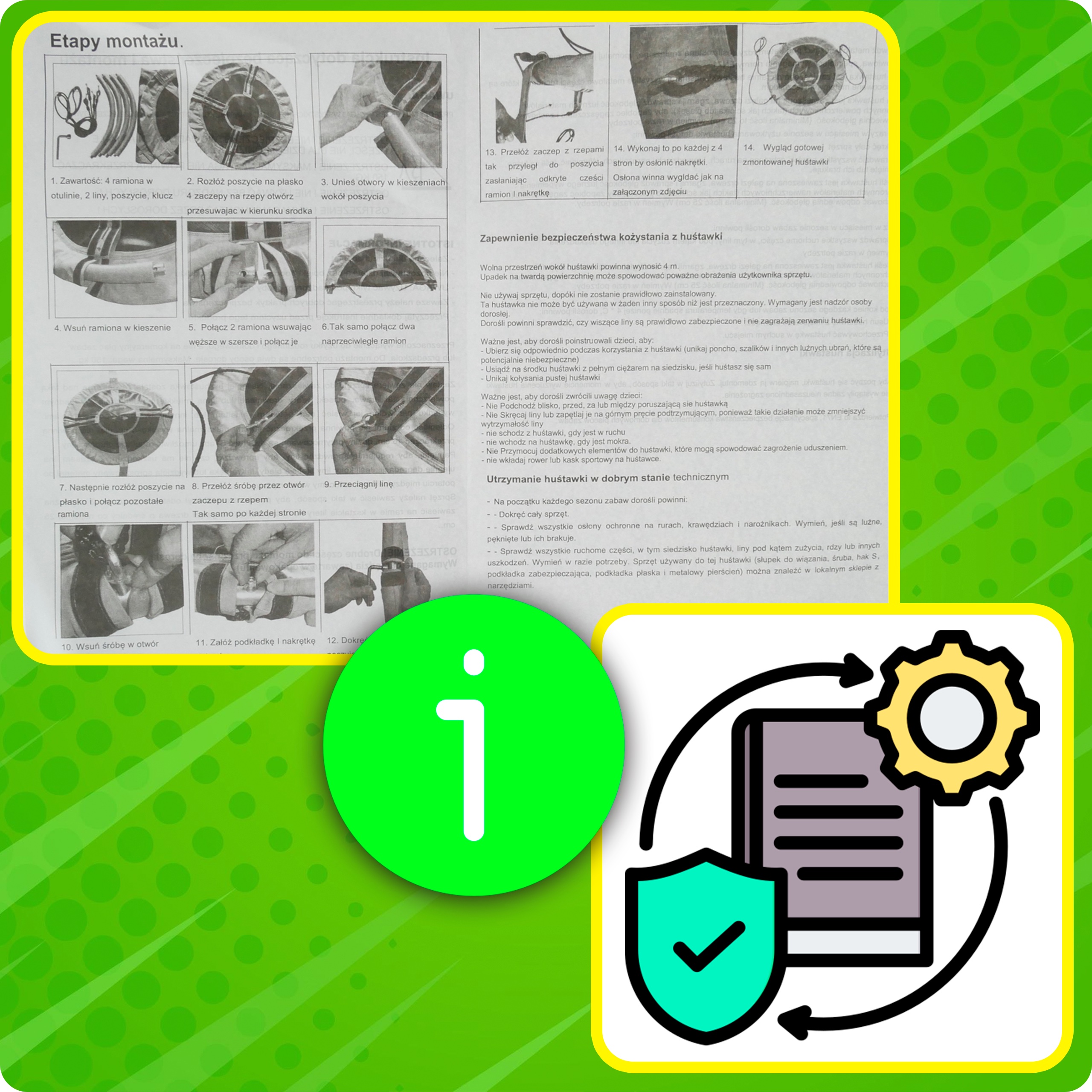 Łatwość montażu i uniwersalność: w zestawie znajduje się polska instrukcja obsługi. Nasza huśtawka jest niezwykle łatwa w montażu i demontażu, co pozwala na szybkie przeniesienie zabawy w dowolne miejsce. Pasuje do większości standardowych stelaży, co czyni ją uniwersalnym dodatkiem do każdego ogrodu.
